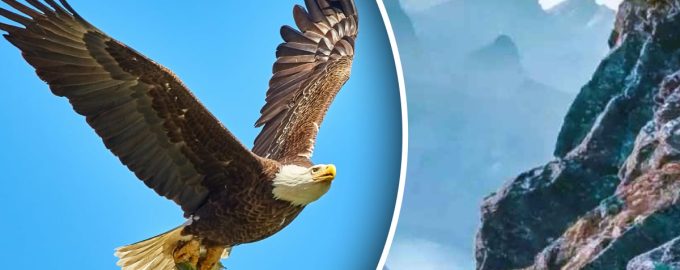 మొదటి చూపులో, ఈ ప్రకృతి దృశ్యం ఎటువంటి జీవుల ఉనికి లేకుండా ఉన్నట్లు అనిపించవచ్చు. కానీ వాస్తవానికి ఇది అలా కాదు – ఎక్కడో ఒక డేగ ఉంది, దానిని గుర్తించడం అంత సులభం కాదు.